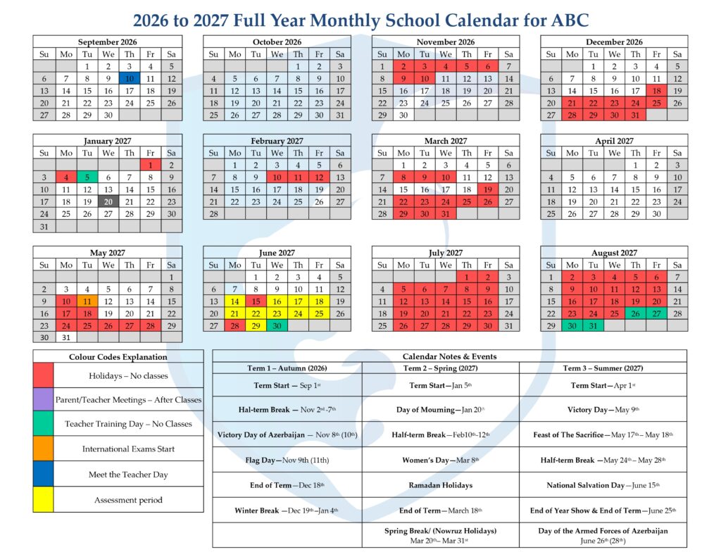 School Calendar Azerbaijan British College School Calendar School Calendar Academic Calendars Primary & Secondary Class Scheduling PRIMRARY & SECONDARY CLASS SCHEDULING TimingsActivity08:00 – 08:15Tutor Time Registration08:15 – 09:00Lesson 109:00 – 09:45Lesson 209:45 – 10:30Lesson 310:30 – 10:45Break Time10:45 – 11:30Lesson 411:30 – 12:15Lesson 512:15 – 13:05Lesson 613:00 – 13:45Lunch13:45 – 14:30Lesson 714:30 – 15:15Lesson 815:15 – 16:00After School Clubs Contact us